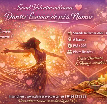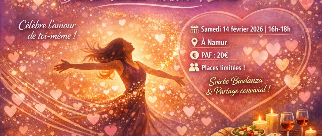 Rejoignez-nous le samedi 14 février 2026, de 16h à 18h à Namur, pour un atelier de biodanza placé sous le signe du mouvement, de la présence et de la bienveillance. Dans une ambiance conviviale, vous serez invité·e à vous reconnecter à votre corps, à vos émotions et à la joie simple d’être vous. La biodanza est une belle manière de transformer la quête de reconnaissance extérieure en une rencontre vivante avec votre propre essence.