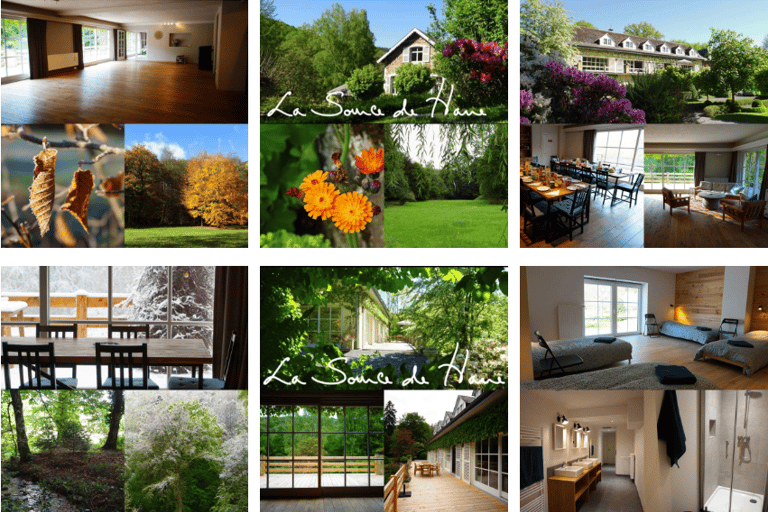 Lieu magique où Alex et France nous accueillent dans leur havre de paix. La magnifique salle de yoga nous invite à la relaxation, la salle à manger nous régale d’une vue verdoyante, la spacieuse cuisine nous invite à la préparation des repas et les bois environnants nous offrent de merveilleuses balades aussi variées que sont les paysages.